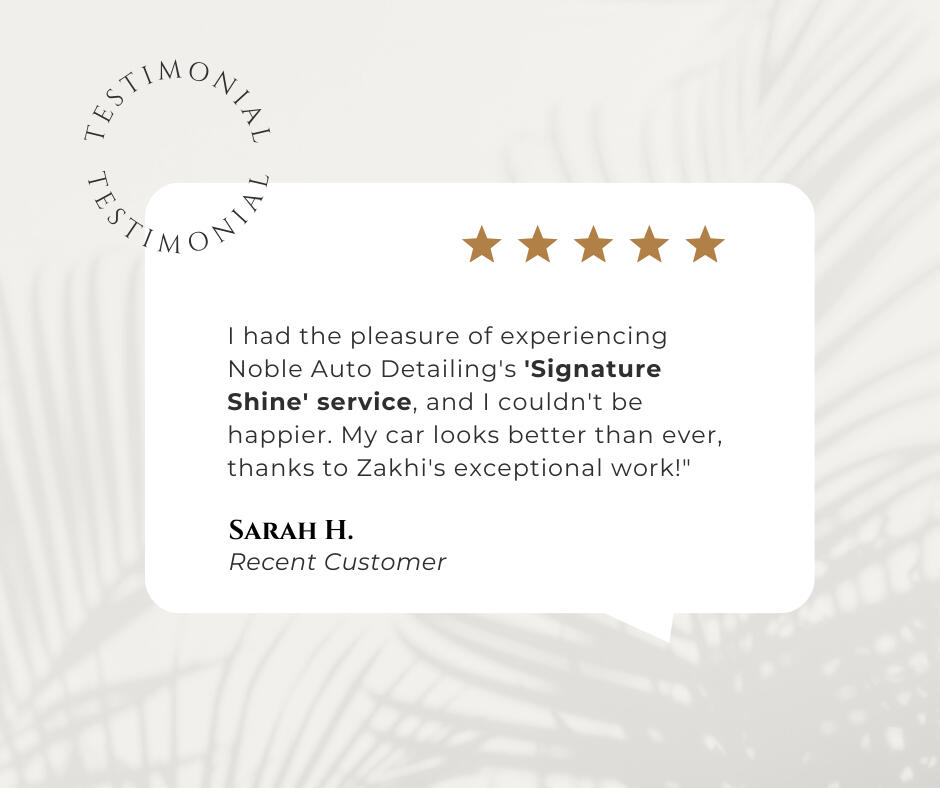 Thanks again for choosing Noble Auto Detailing. We can't wait to make your car shine!Warm regards,